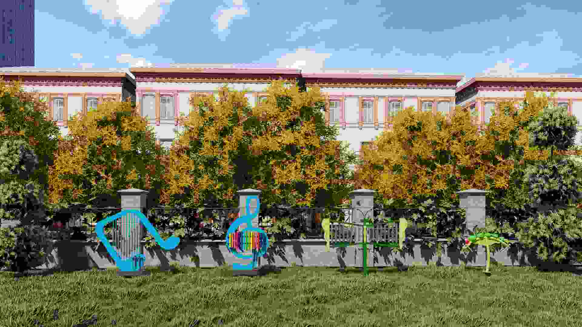 Bu musiqiy yozuvlarning shaklini arfa ritmi bilan mukammal ravishda birlashtiradigan va Venzhou Xank Atamentation tomonidan belgilangan "blyuz arf" ritmi bilan mukammal birlashtiradigan ochiq perzussiya vositasi. Yorqin ko'k musiqali yozuvlar bilan u 14 guruhli sozlangan metall tovushli barlar bilan jihozlangan, yangi tashqi materiallar va golli dizayn bilan bog'langan. Bu nafaqat jamoat joylarida badiiy o'rnatish, balki musiqiy instinktlarini yo'q qilish uchun barcha yoshdagi odamlar uchun interfaol cholg'u. Parklar, kampuslar, jamoalar va boshqa stsenariylar uchun javob beradi, bu tabiat va ritmni ochiq havoda kutib olishga imkon beradi.
