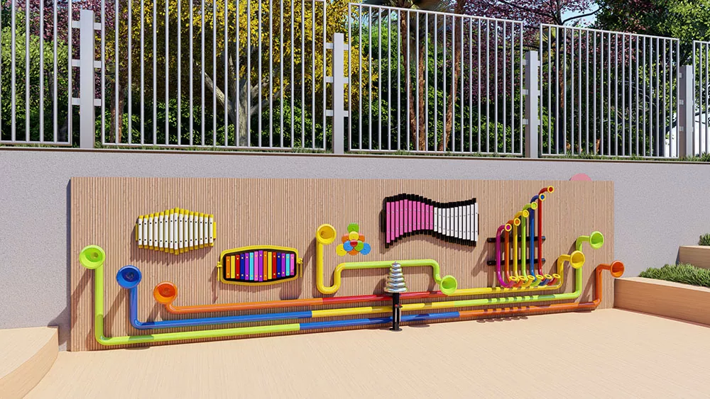 Musiqa devorining perkussion o'yinlari 400 * 20 * 120 km, yuqori sifatli galvanizli trubkali materialdan yasalgan. U tashqi mavzular bog'larida, mavzudagi restoranlar, bolalar bog'chalari va boshqa joylarda ishlatilishi mumkin. Shuningdek, u farqli cheklangan perkussion asboblar bilan birgalikda ishlatilishi mumkin.
