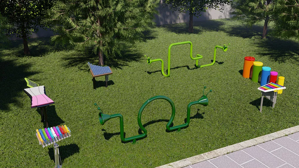 Tashqi muassasalar Kamalak klaviaturasi uyda va ochiq maydonlarda, maktab maydonchasi yoki bolalar bog'chasida bo'sh devorlar bilan o'ynang. Boshqa tashqi antussion asboblardan ham foydalanish mumkin.