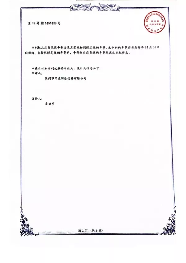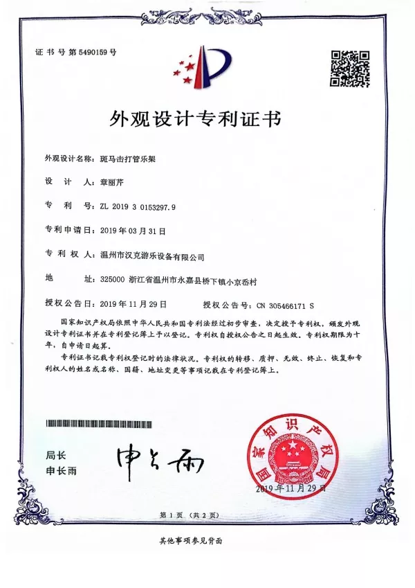 Shu bilan birga, Xankning mulkiy mahsuloti sifatida biz 2019 yilda zebra shaklidagi zebra shaklidagi patent guvohnomasini 2019 yilda 2019 yilda ariza berdik va Xitoy intellektual mulk idorasidan tasdiqlandi.